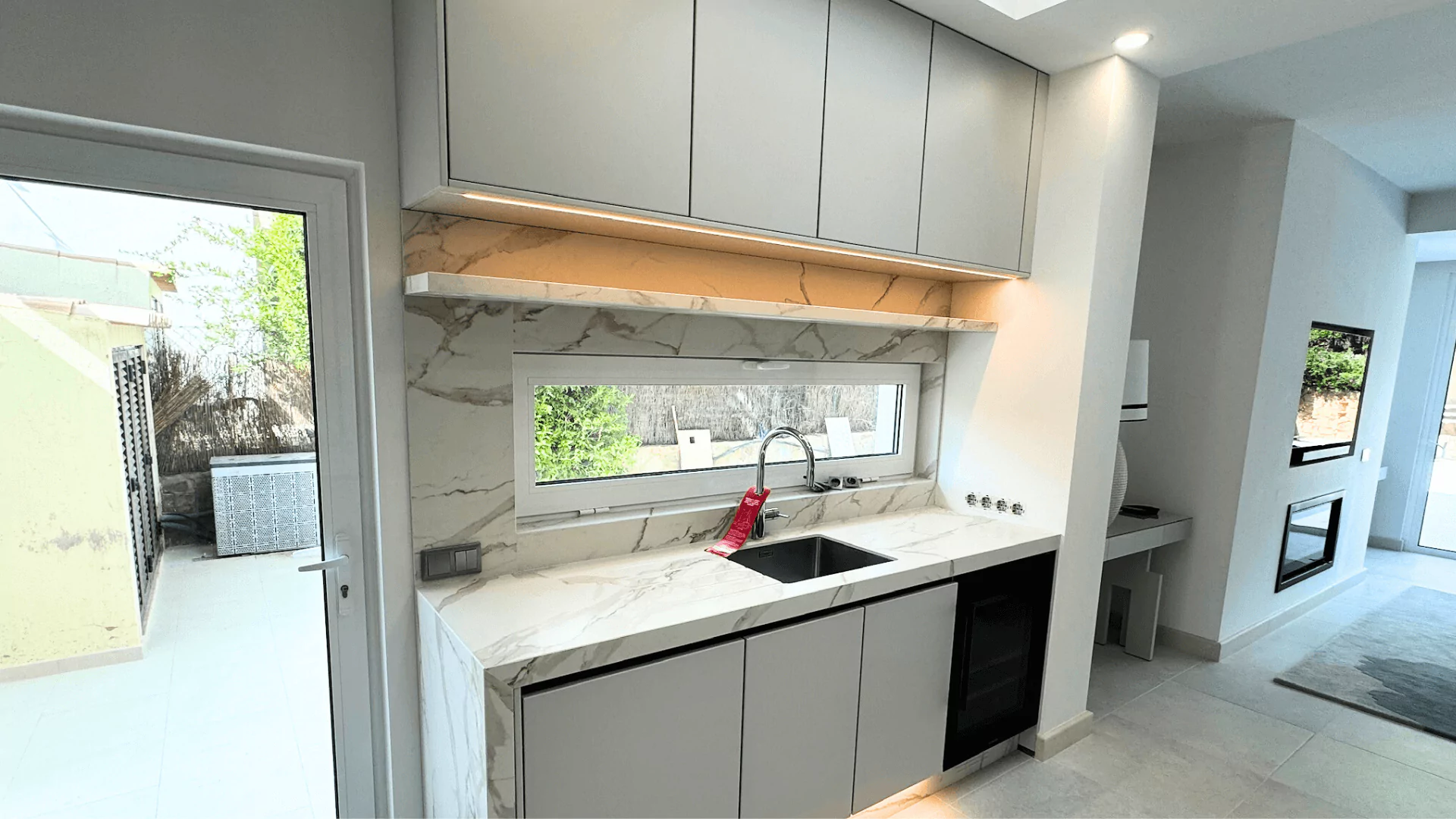 This project involved a complete transformation of both the interior and exterior of an outdated property. The home, with its old-fashioned design, was fully renovated to create a modern, functional living space. A spacious lounge extension was added, providing more room for relaxation and entertaining. The kitchen was relocated to a more central area, improving both the flow of the home and its functionality. The result is a refreshed, contemporary living space that perfectly balances style and practicality.